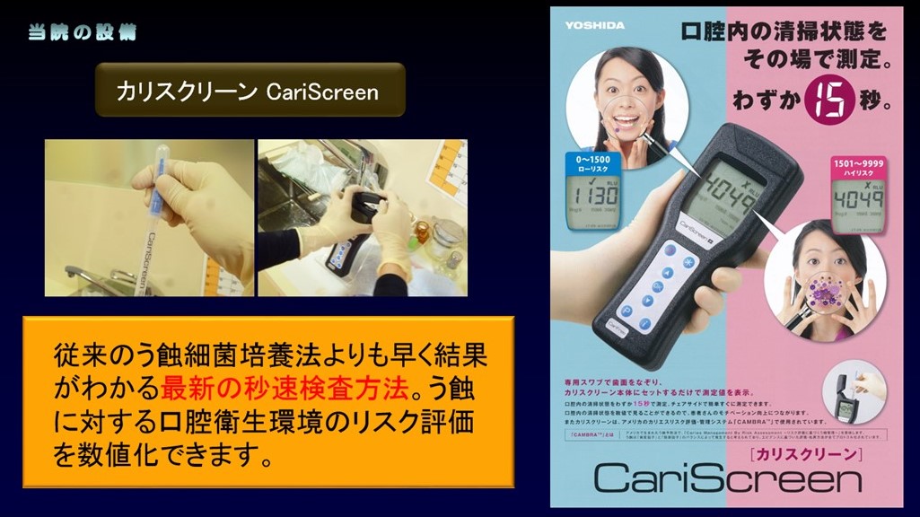 当院はAED(自動体外式除細動器)や歯科用吸引装置の設置など多項目にわたる患者さんの安全に配慮した歯科外来診療環境体制の施設基準を満たしている歯科医院です。