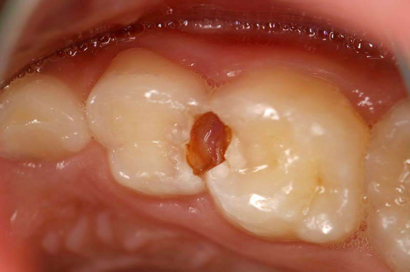 虫歯を放っておくと 痛みを感じないままに大きな穴 乳歯は永久歯より軟らかく、痛みを感じにくい歯です。痛みを感じないままに大きな穴になっているケースも少なくありません。