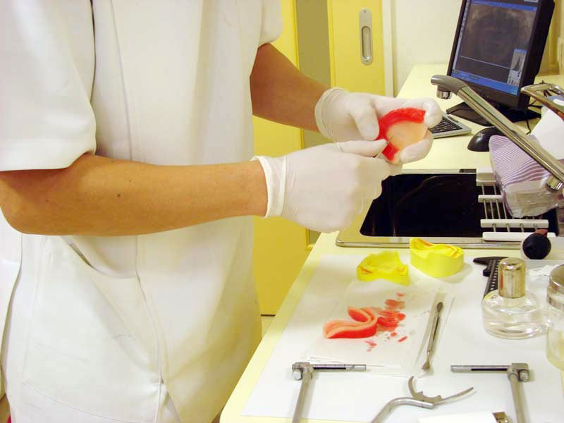 専用の器を頬や舌の動きに合わせ調整後、精密な型とりを行います。