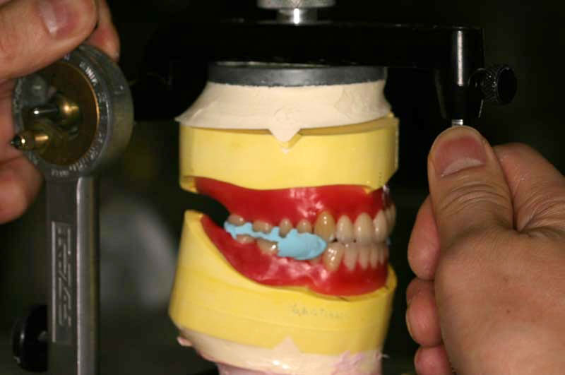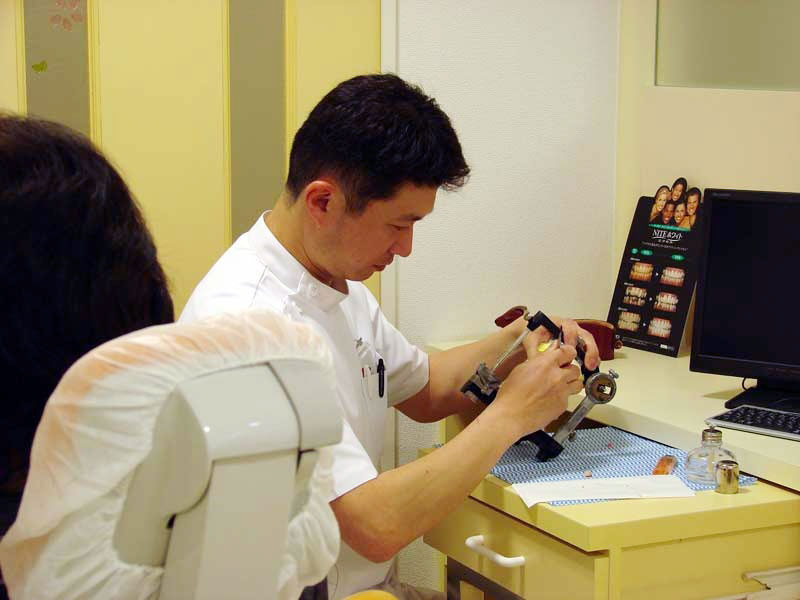 かみ合わせの高さや顎関節との関係を調べます。この日は人工歯も選択します。
