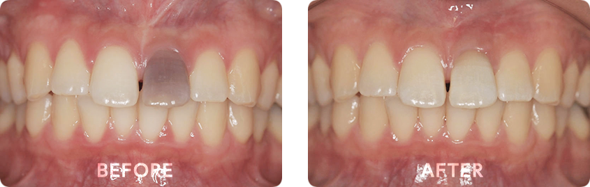 失活歯ホワイトニング(ウォーキングブリーチ) 神経・血管をとる根っこの治療をした、いわゆる死んでしまった歯は変色します。このような歯に対しては歯の中に専用の薬を入れてホワイトニングします。